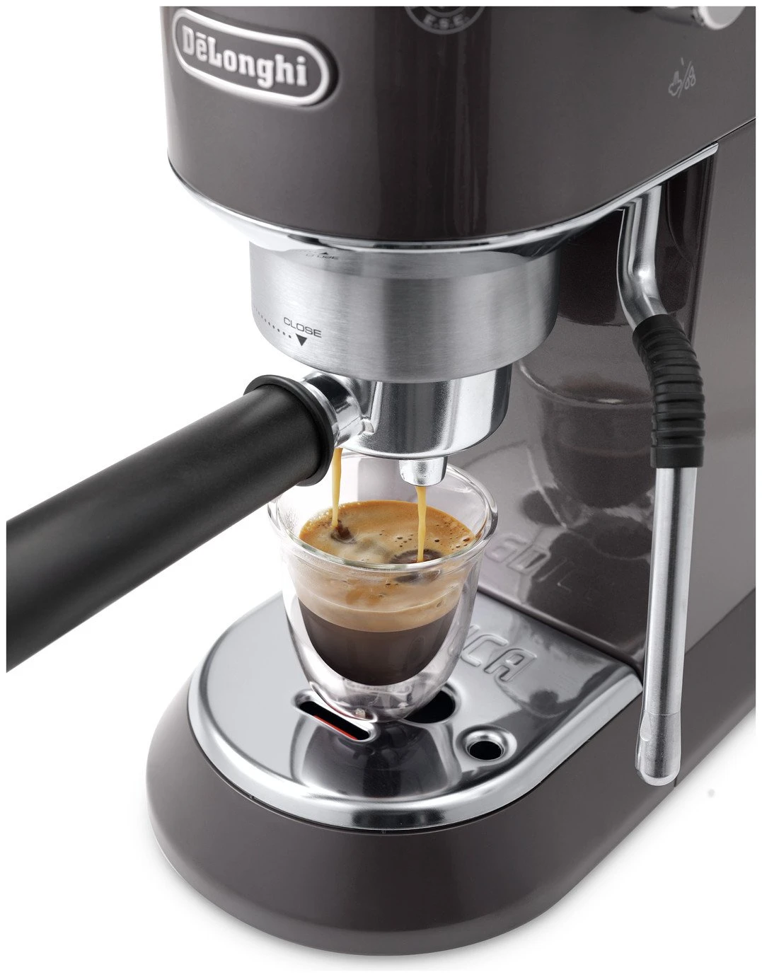 Exquisite taste combined with aesthetic pleasure. Dedica, the stylish pump espresso machine, now with My Latte Art steam wand: perfect to create the silky, fine texture to make your lattes and flat whites. Make the most of any drink. Where there is taste, time stands still.