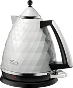 Add a touch of style to your kitchen with this De'Longhi Brillante Kettle – uniquely textured and designed, with multi-faceted high gloss finishing and chrome details. Complete with 360 degree swivel base for easy use, water level indicator for just the right amount and auto shut off.