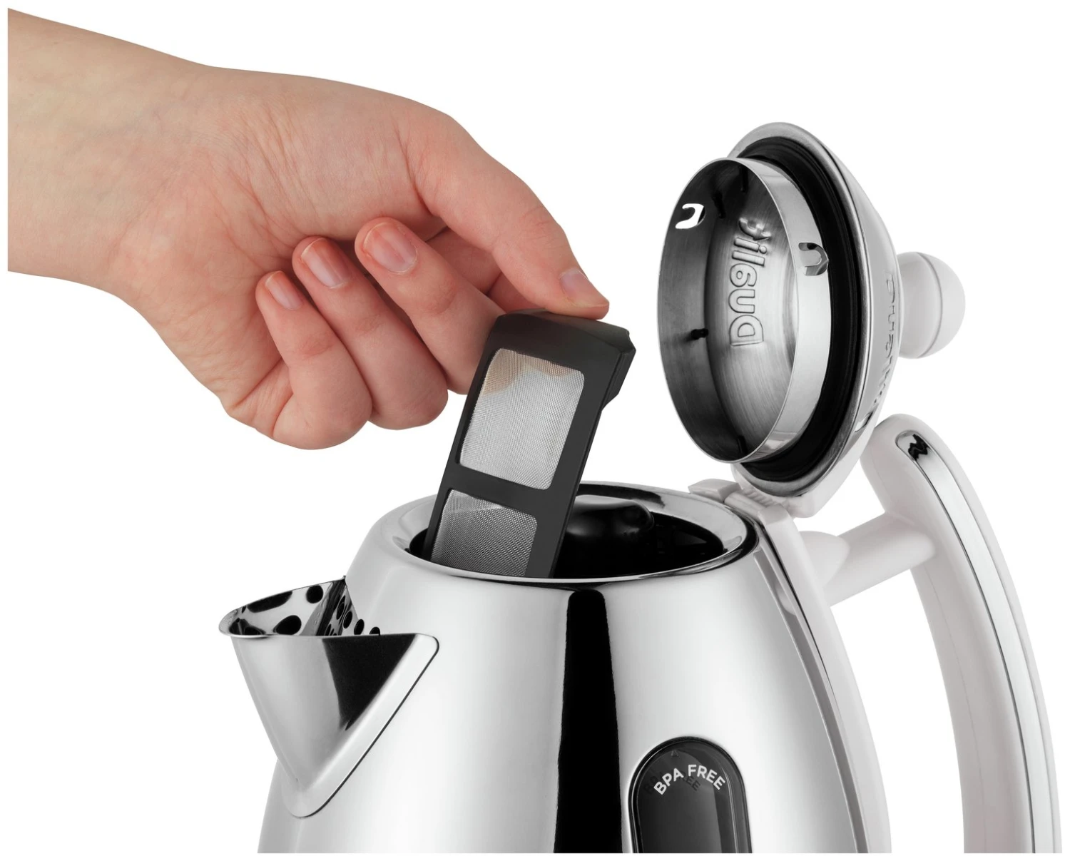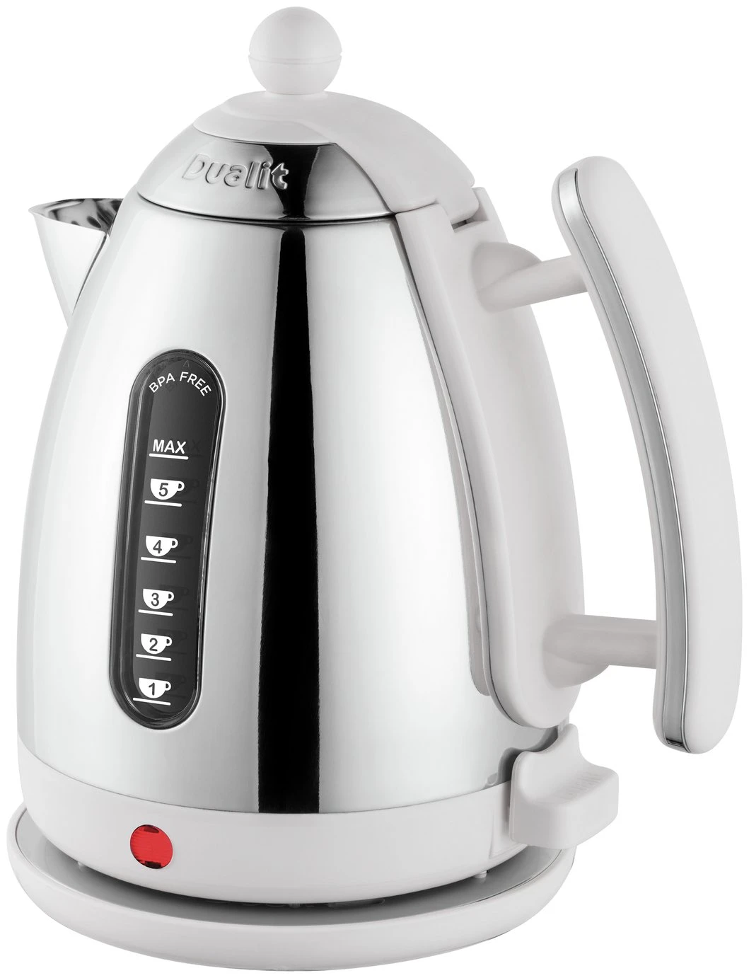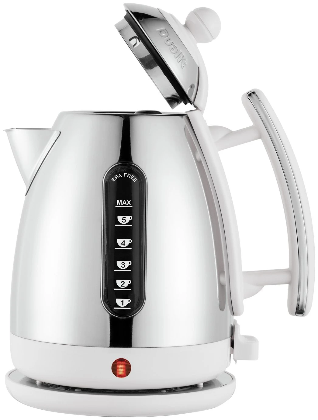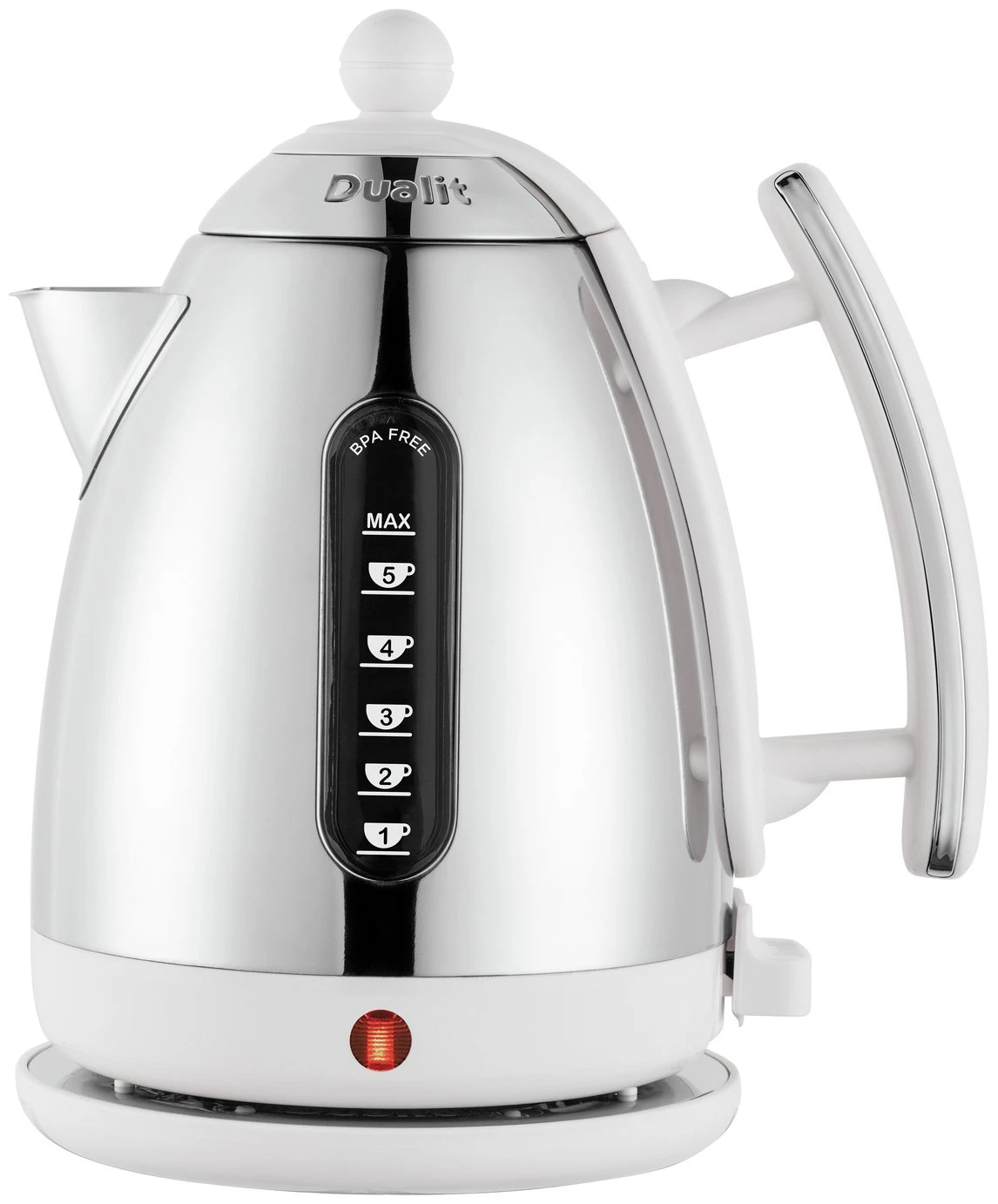 As stylish as it is functional, Dualit's Lite Kettle is an easy to use, upright kettle with a smooth, pouring action. The BPA free viewing windows feature a cup level indicator on one side and the other side measures the water in litres. Fill the kettle with just the right amount of water you need to boil, down to just one cup, saving time, energy and water. The Lite Kettle is easy to fill, lift and pour. The spout on the Lite Kettle has been precision engineered with contours to ensure spills are a thing of the past.