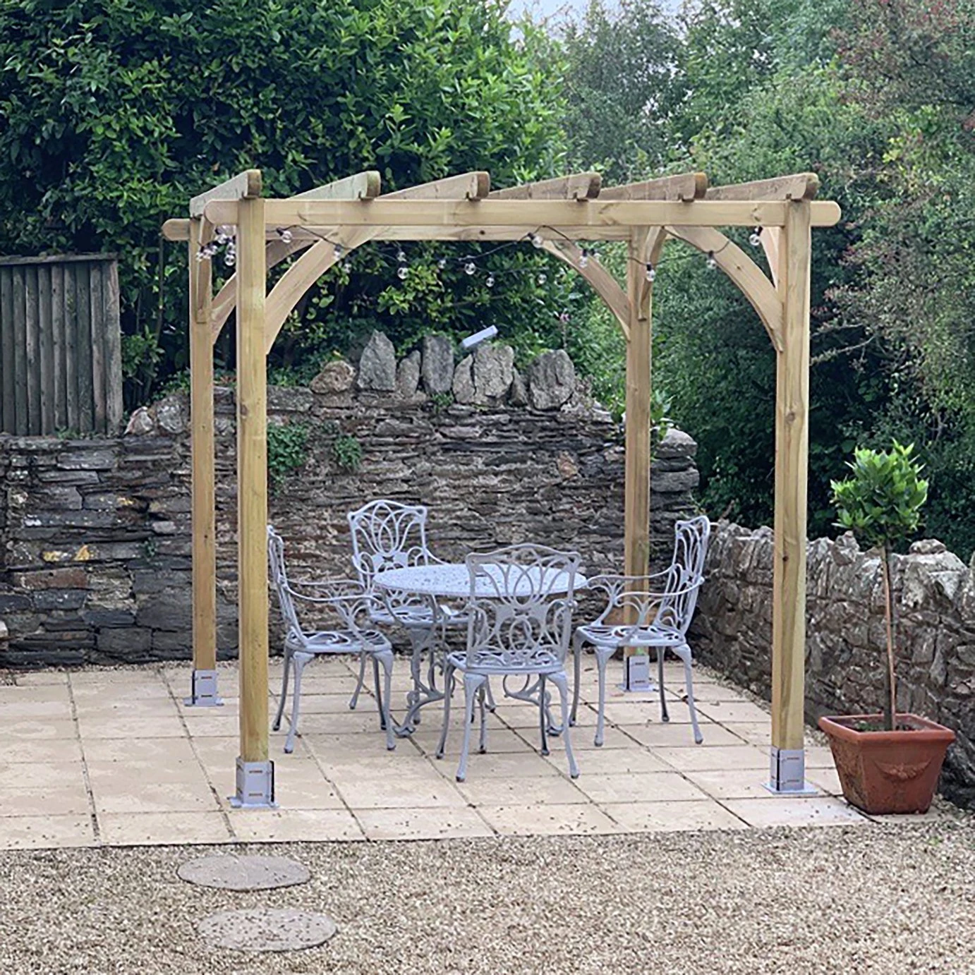 The pergola is manufactured from Pressure Treated timber, which comes with a 15-year guarantee against rot and fungal decay. The structure has also been smooth-planed to give it a splinter-free finish. The posts of the pergola can be sunk into the ground to keep it secure. Delivered flat packed with all fixtures needed, and easy-to-follow instructions.