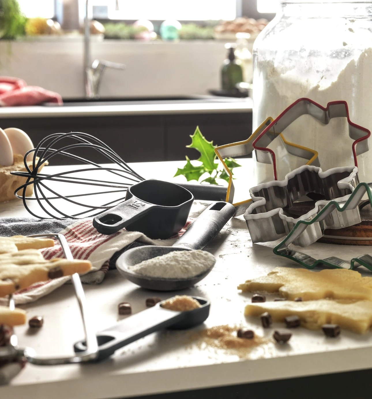 Get ready, get set, go! Everything you need to hold your own bake off. Whisk, spatula and spoon to make your cakes light as a feather. 5-piece cup measures and 4-piece spoon measures so you get the baking mixture just right. Don't worry about the mess, just pop it in the dishwasher and you're ready to go. Chocolate brownie or carrot cake?