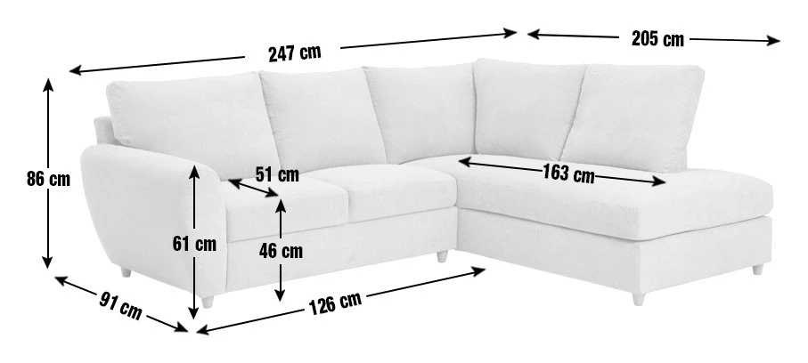 - Fixed seats with pocket sprung and foam filling.