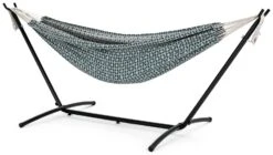 Stylish and comfortable, this easy to assemble garden hammock is contemporary design at its best. Simple for you to maintain, it is practical as well as classy and gives you a great space to lie and relax in the sunshine. The frame can be left outside no matter the weather so no worries about packing it away when you're done.