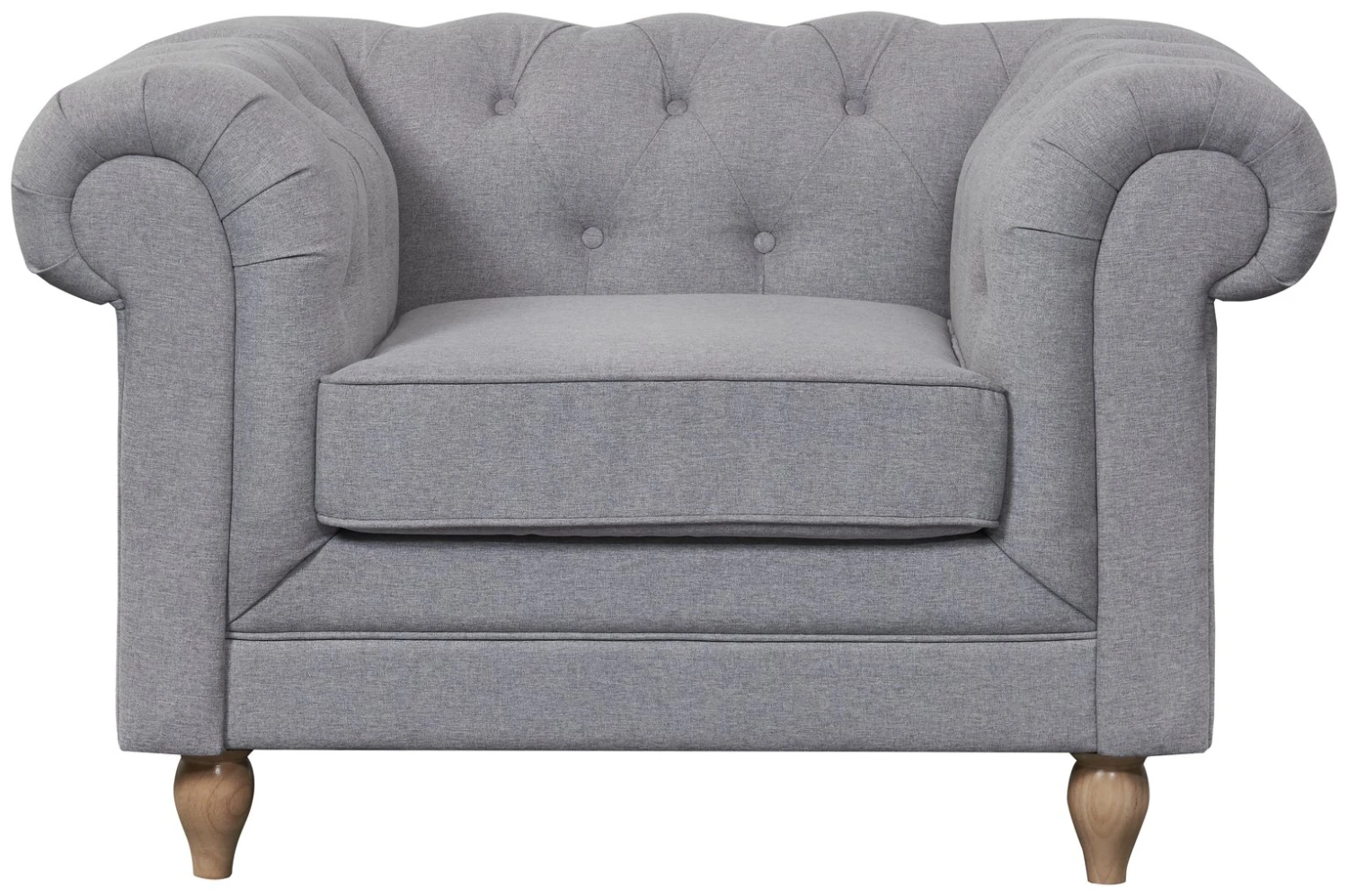 Searching for a classic statement chair? You can't go wrong with our rich grey wool Chesterfield. It has all the iconic features you'd expect with this traditional design. A low padded back with deep button tufting, elegant scroll arms and turned wooden legs. Pocket sprung cushions and piped detailing add to its upmarket credentials. This is one timeless, tasteful seat. Need we say more?