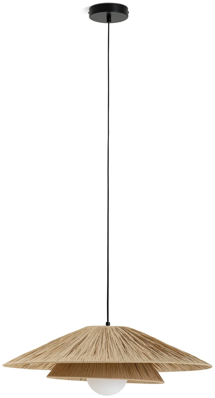 A shade above. Our two-tier Guii ceiling light lends an organic ambience to your lounge or kitchen. Naturally lightweight raffia meets a strong, metal frame to create this tastefully textured design. This pretty pendant is ideal for accent lighting and low ceilings. Can be used with a dimmer switch for your choice of bright or mood lighting. Simply radiant.