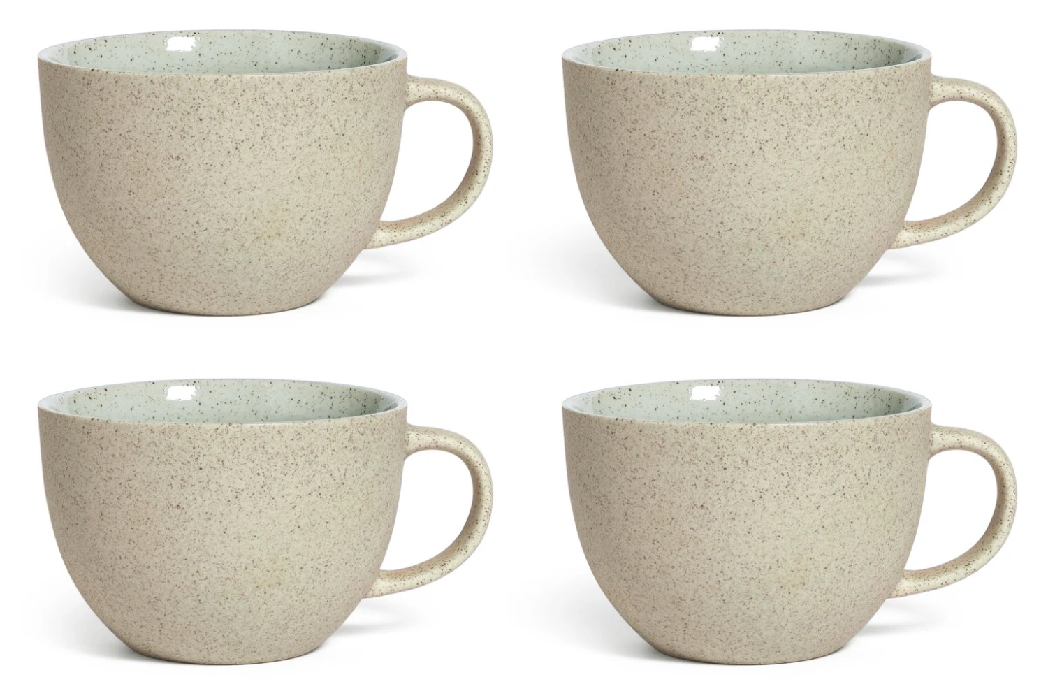 Enjoy a relaxing cuppa. Sip into something more comfortable with these speckled glazed stoneware mugs. With a warm outer and cool inner the calming colours are inspired by Mediterranean sands. These 4 are a fashionable fusion of traditional and modern, with their classic shape and contemporary good looks. A soothing set that hits the hot spot.