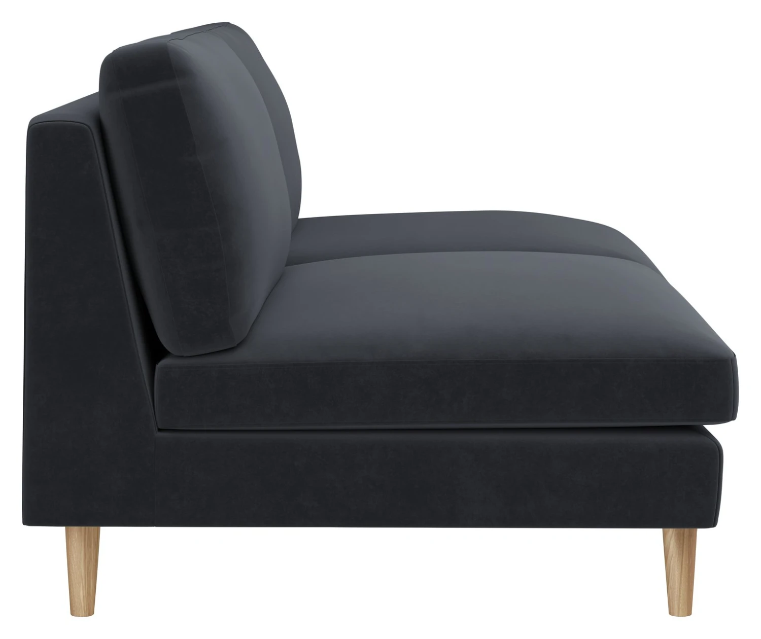 With its pared-back design and plump, pillow-like seat and back cushions, the Teo charcoal Jade velvet 3 seater has a fun feel and a small footprint. Created in the Habitat Design Studio and made in Europe, the contemporary foam and fibre sofa has a relaxed, informal look, enhanced by its wrapped cushion covers. Its armless design and dowelled wood legs give the design a light, airy feel, perfect for smaller spaces. Upholstered in our easy velvet fabric which is super durable and spill-resistant, it's perfect for busy homes.