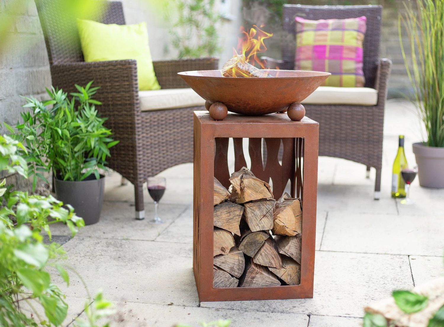 This Firepit will be a terrific addition to any outside space that will benefit from a thoroughly modern garden feature. Manufactured in high quality steel, this firepit is practical as well as beautiful with a delightfully decorated compartment underneath where logs can be stored. An oxidised surface texture gives the impression of age but there is nothing out of date about this firepit, this is reflected by the superb design values that have been included in a remarkably attractive creation.