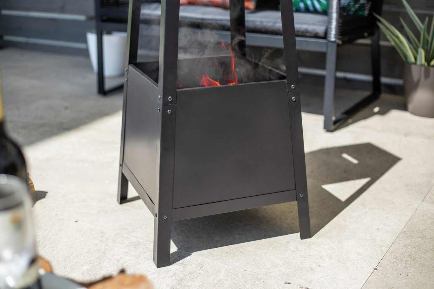 This contemporary chimenea from outdoor heating experts, La Hacienda is a simple yet highly stylish outdoor heating solution. Built from top quality steel with a tough black finish. This sleek design will compliment any garden or outdoor area.