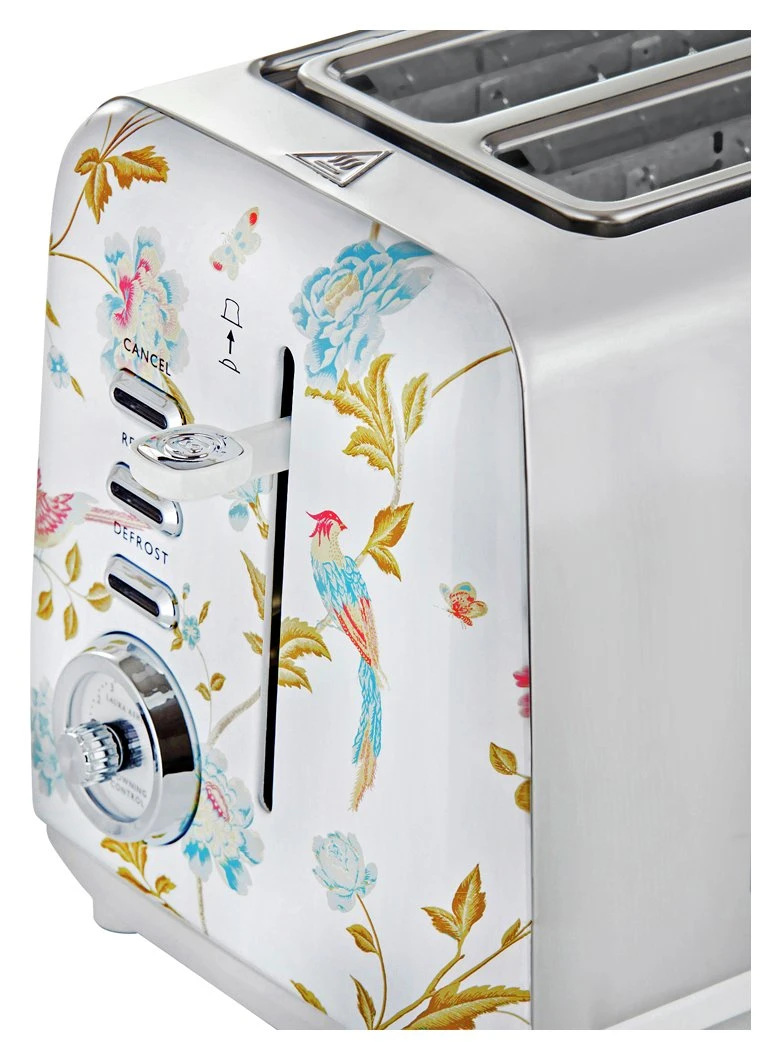 If you're looking for a multi-functional toaster that not only makes the perfect toast but can cook tasty bagels, luscious crumpets, and wholesome thick-sliced bread then look no further! The Laura Ashley 2-Slice Toaster is the perfect match to make your breakfast and style your kitchen at the same time. The power output ranges between 780-925 watts.