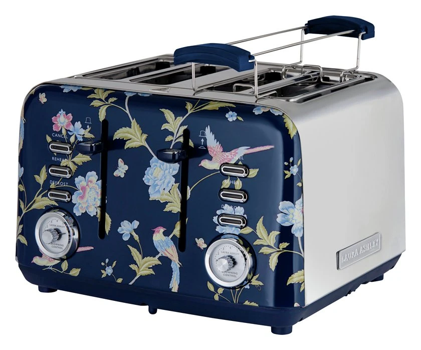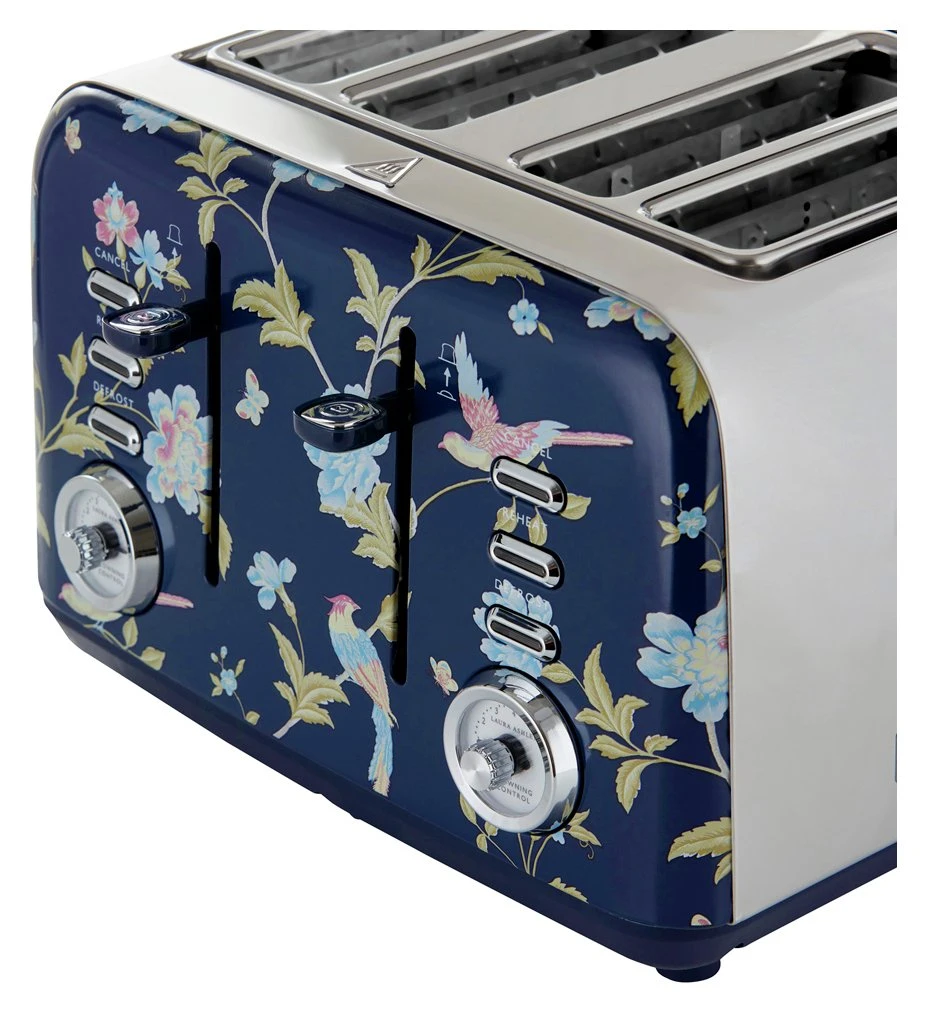 If you're looking for a multi-functional toaster that not only makes the perfect toast but can cook tasty bagels, luscious crumpets, and wholesome thick-sliced bread then look no further! The Laura Ashley 4-Slice Toaster is the perfect match to make your breakfast and style your kitchen at the same time. The power output ranges from 1550-1850 watts.