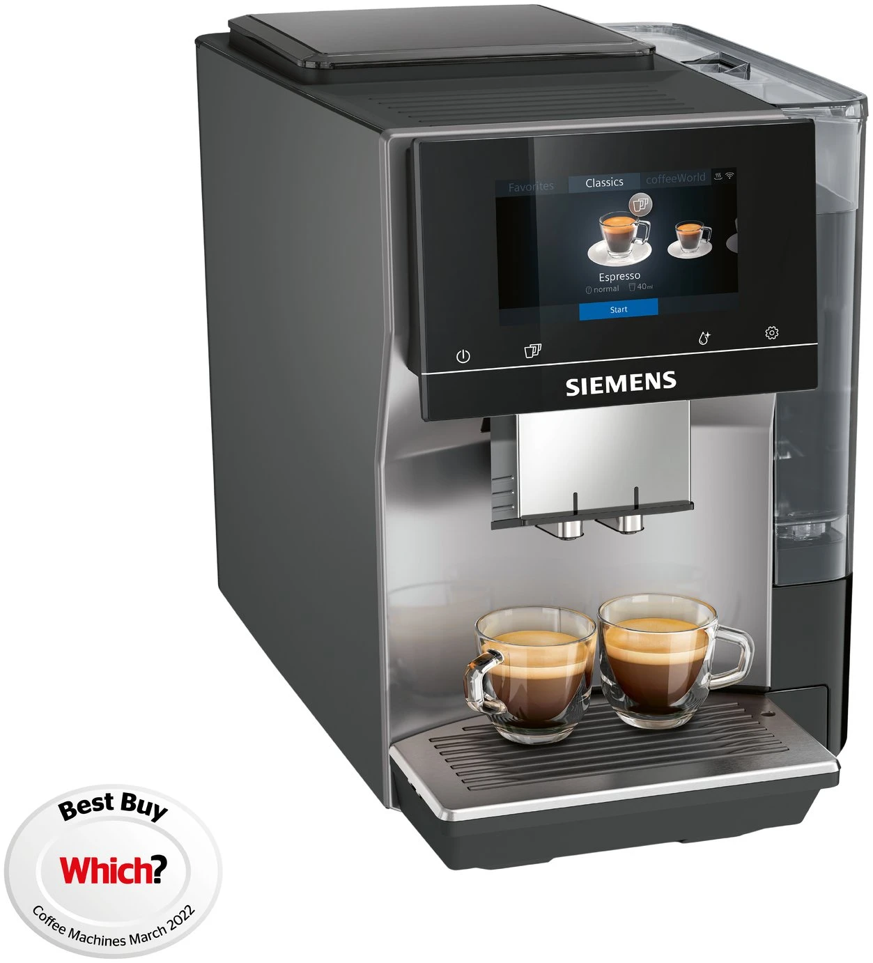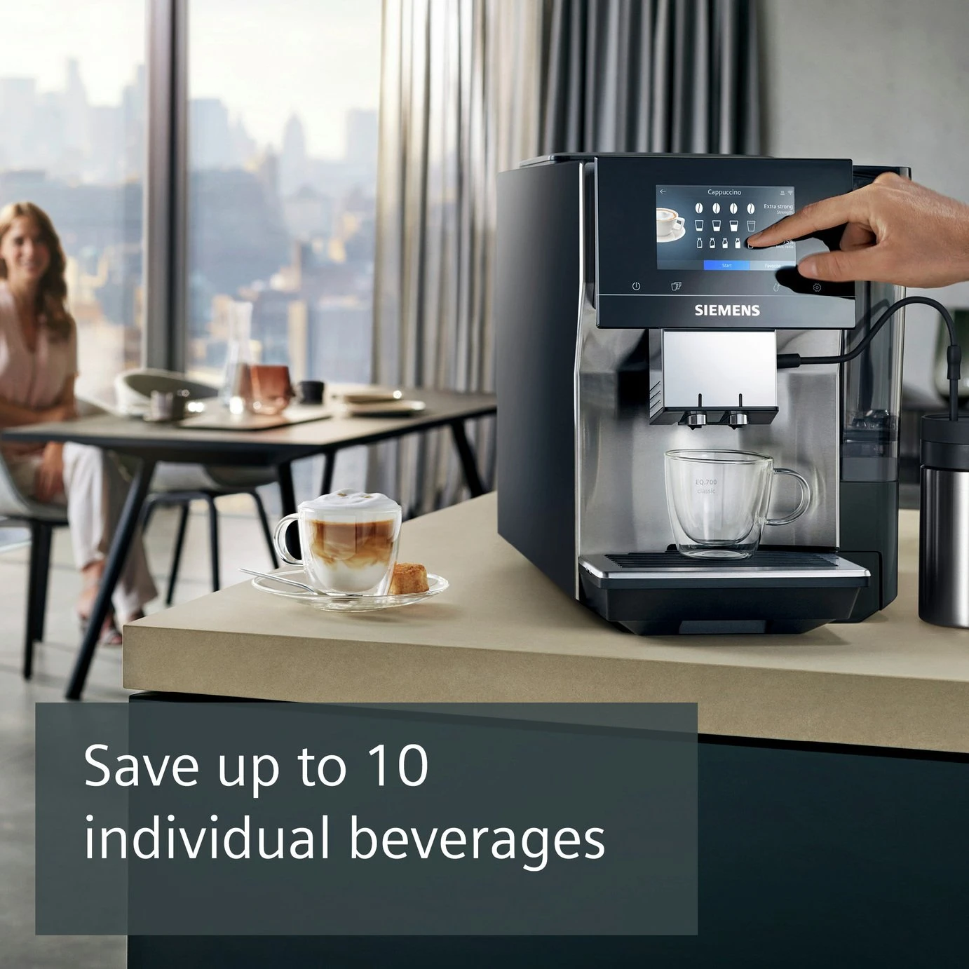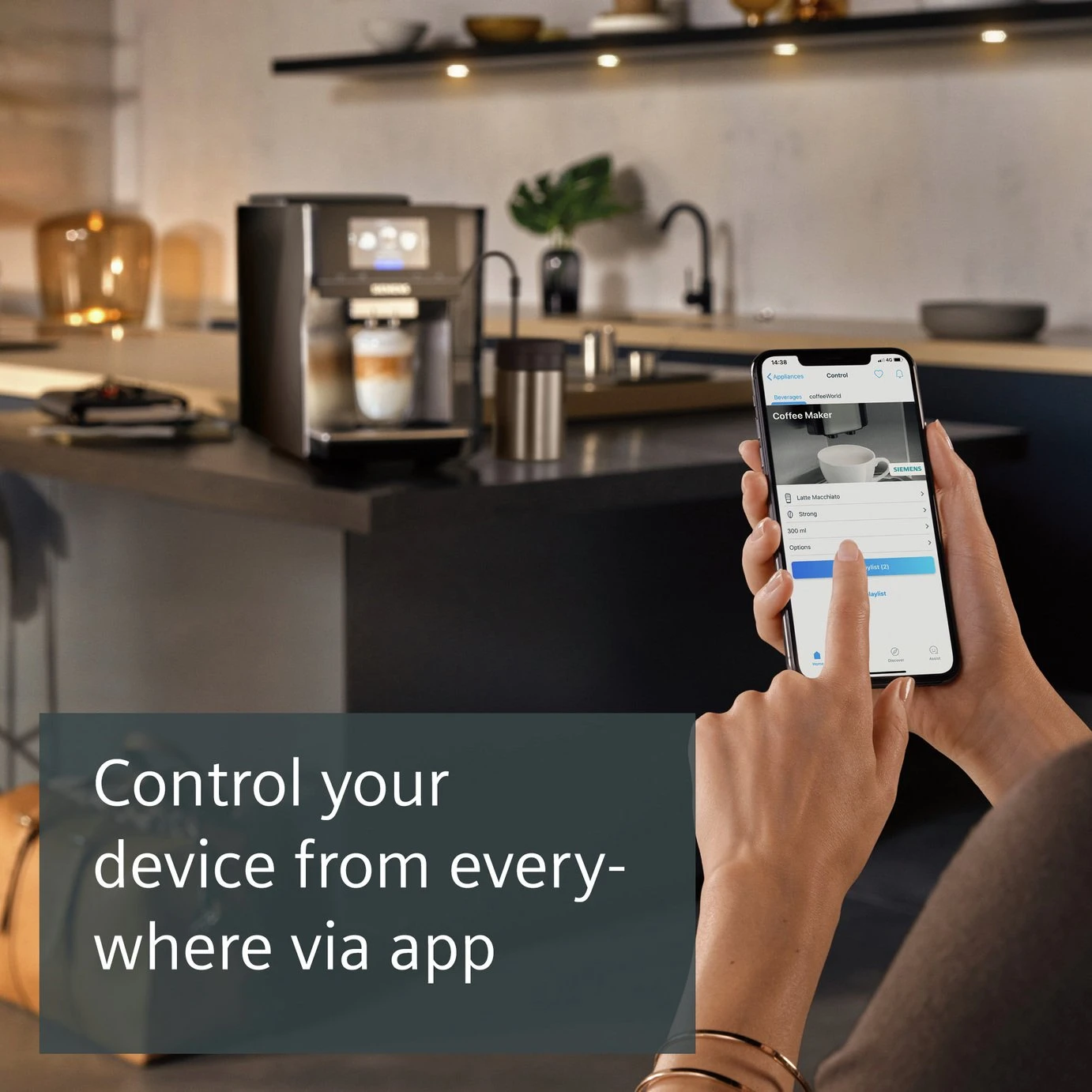 Elegant design meets a smart user interface. Explore 32 beverages with coffee world using the Home Connect App. With the brilliant iSelect display you just swipe through a huge variety of drinks. You can even control your machine from your bed via the app. The special milk hose lets you froth perfect milk directly from the milk carton and the aromaSelect function, you can adapt the taste to your personal preferences : mild, balanced or distinctive.