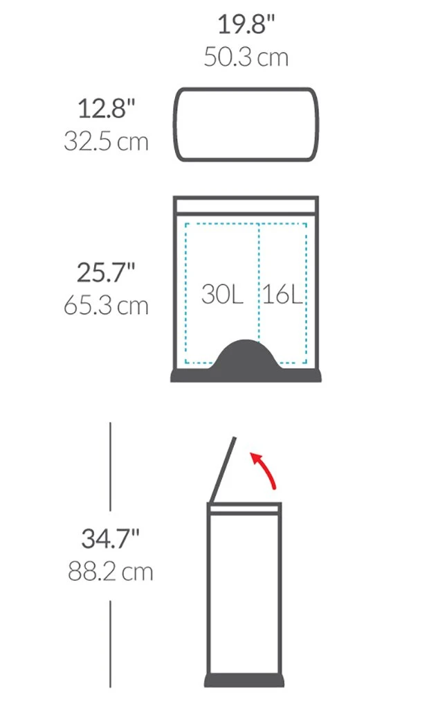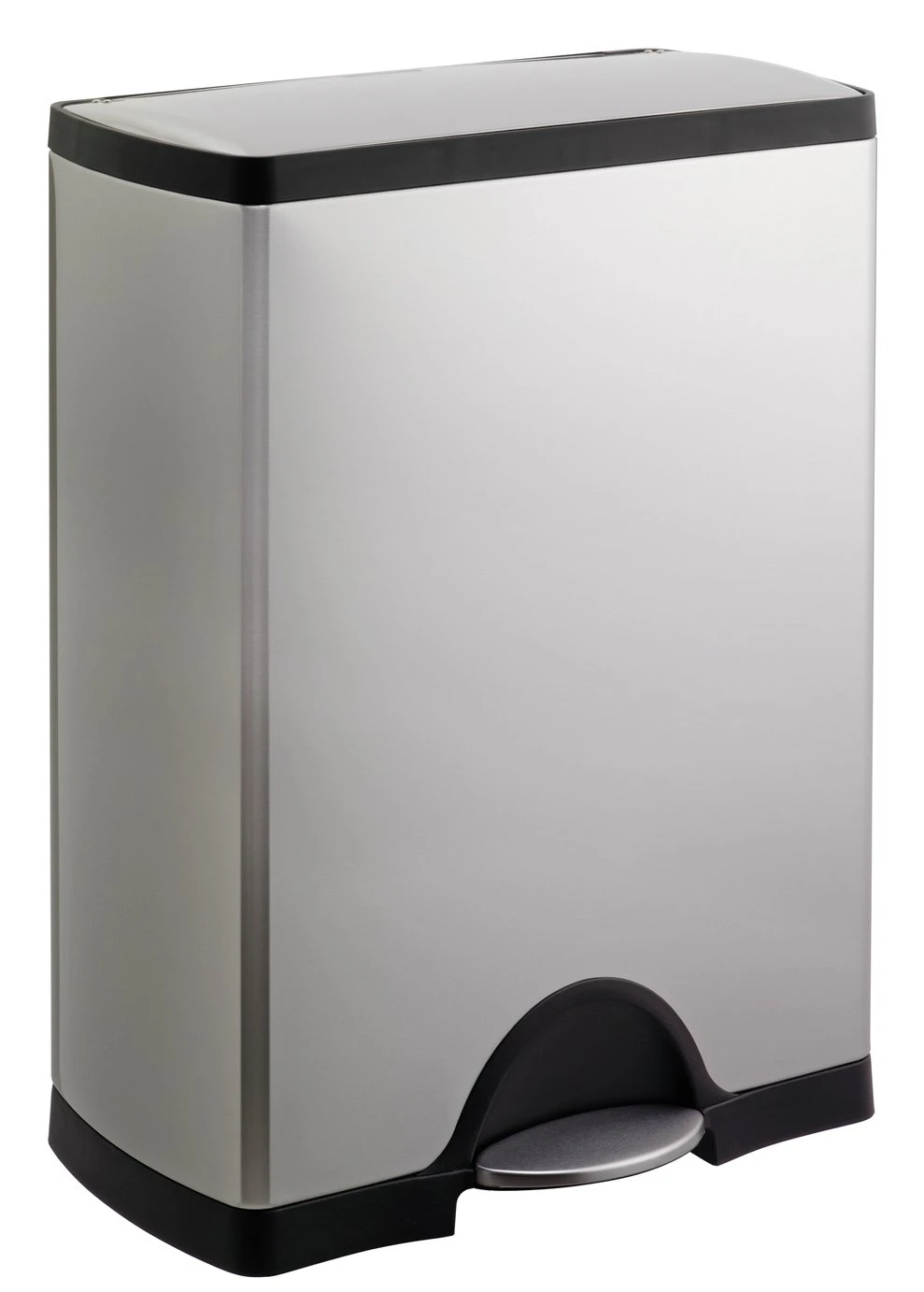 The simplehuman dual compartment rectangular pedal bin has two inner buckets and a space-efficient shape that makes it easy to separate rubbish and recyclables in one place. Our strong steel pedal is engineered to last over 150,000 steps – that's more than 20 steps a day for 20 years, and our patented lid technology ensures a smooth, silent close every time. Fingerprint-proof finish resists smudges to keep stainless steel shiny. simplehuman code H and code V liners are designed to fit this bin perfectly.