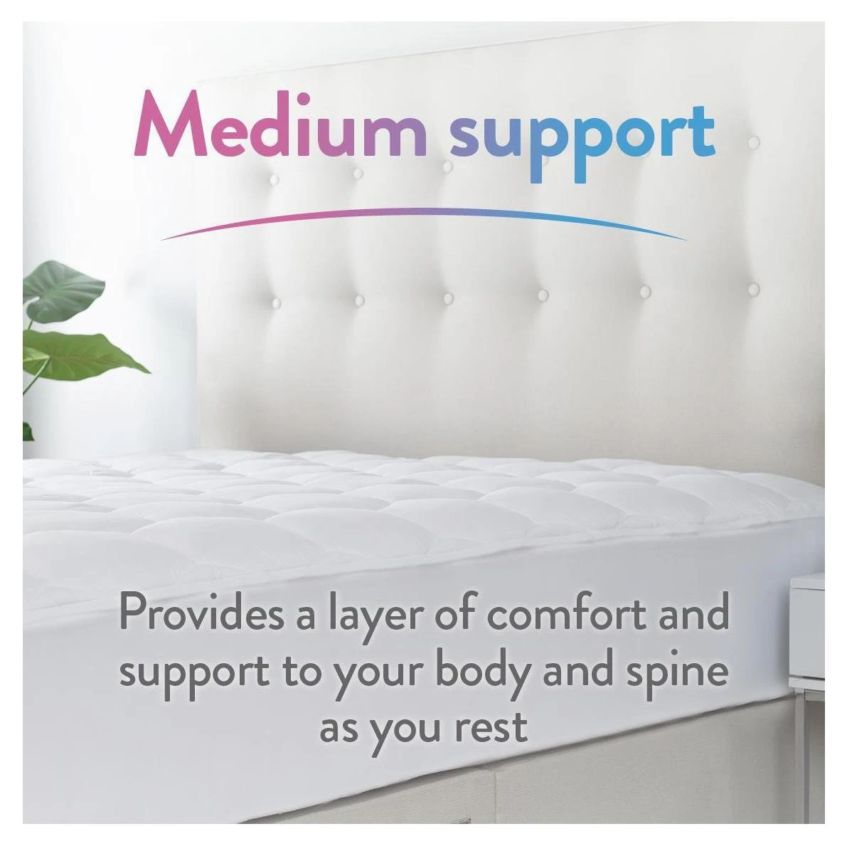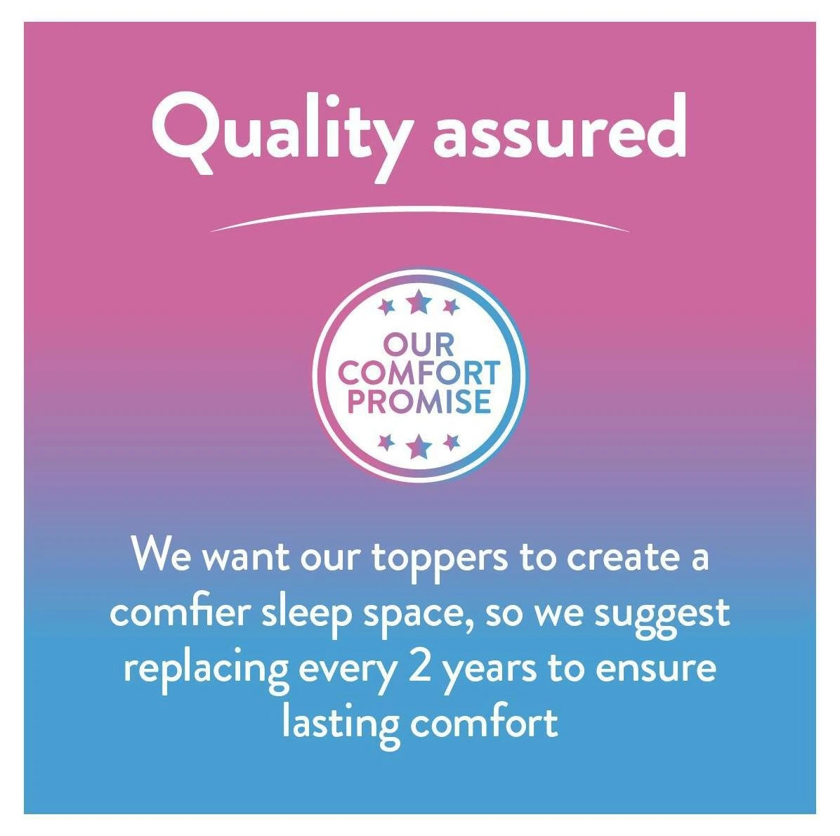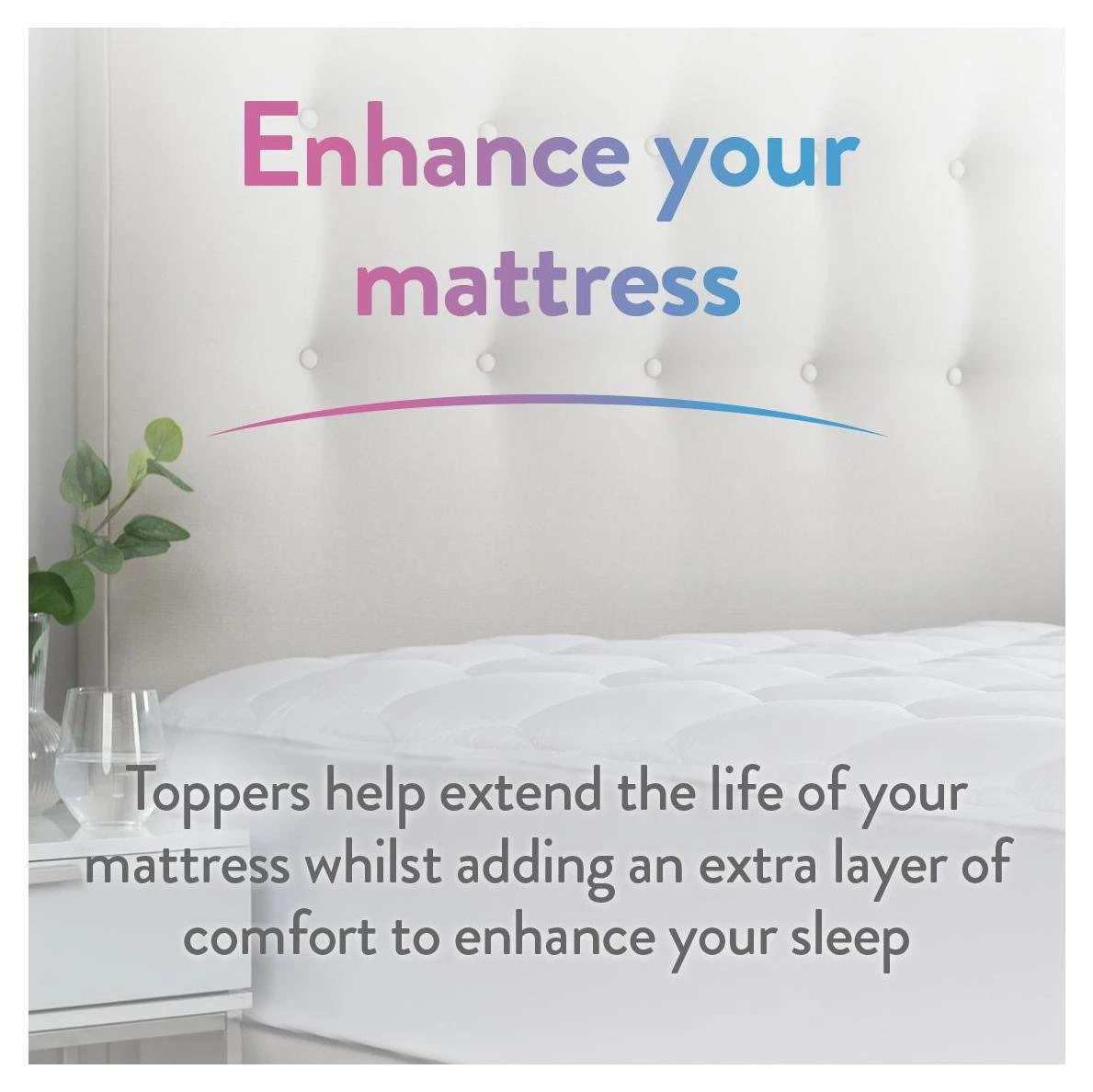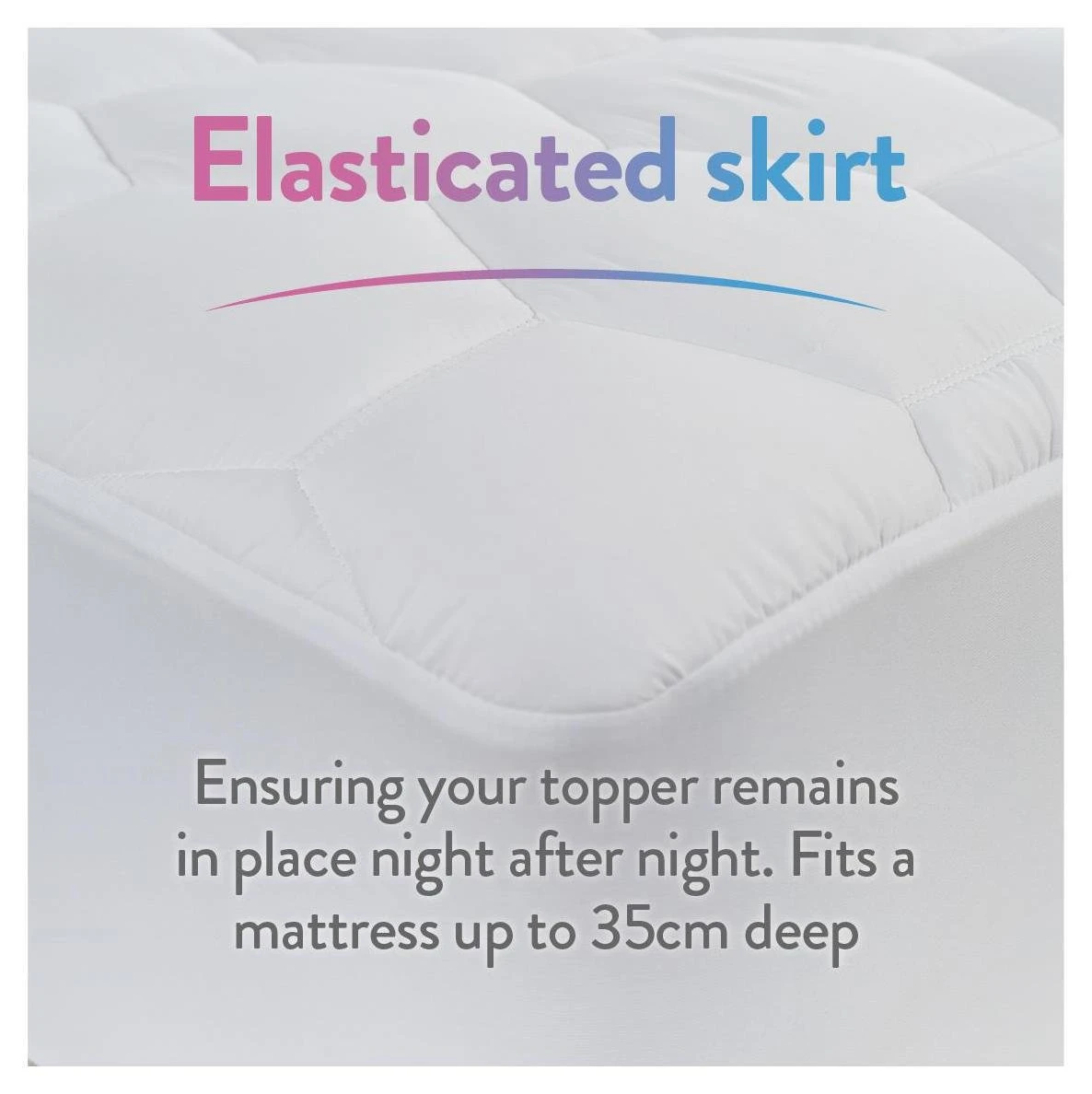 At Slumberdown we believe everybody deserves a better night's sleep. The Slumberdown Climate Comfort Topper has a breathable filling which wicks away moisture resulting in a cool, dry sleep space. The soft touch cover ensures your mattress is protected from sweat and stains. This quilted topper is 2.5cm deep and fits to your bed with a secure skirt, suitable for mattresses up to a depth of 35cm. What's more our products are Easy Care which means they can be machine washed to ensure a clean and fresh sleep space.