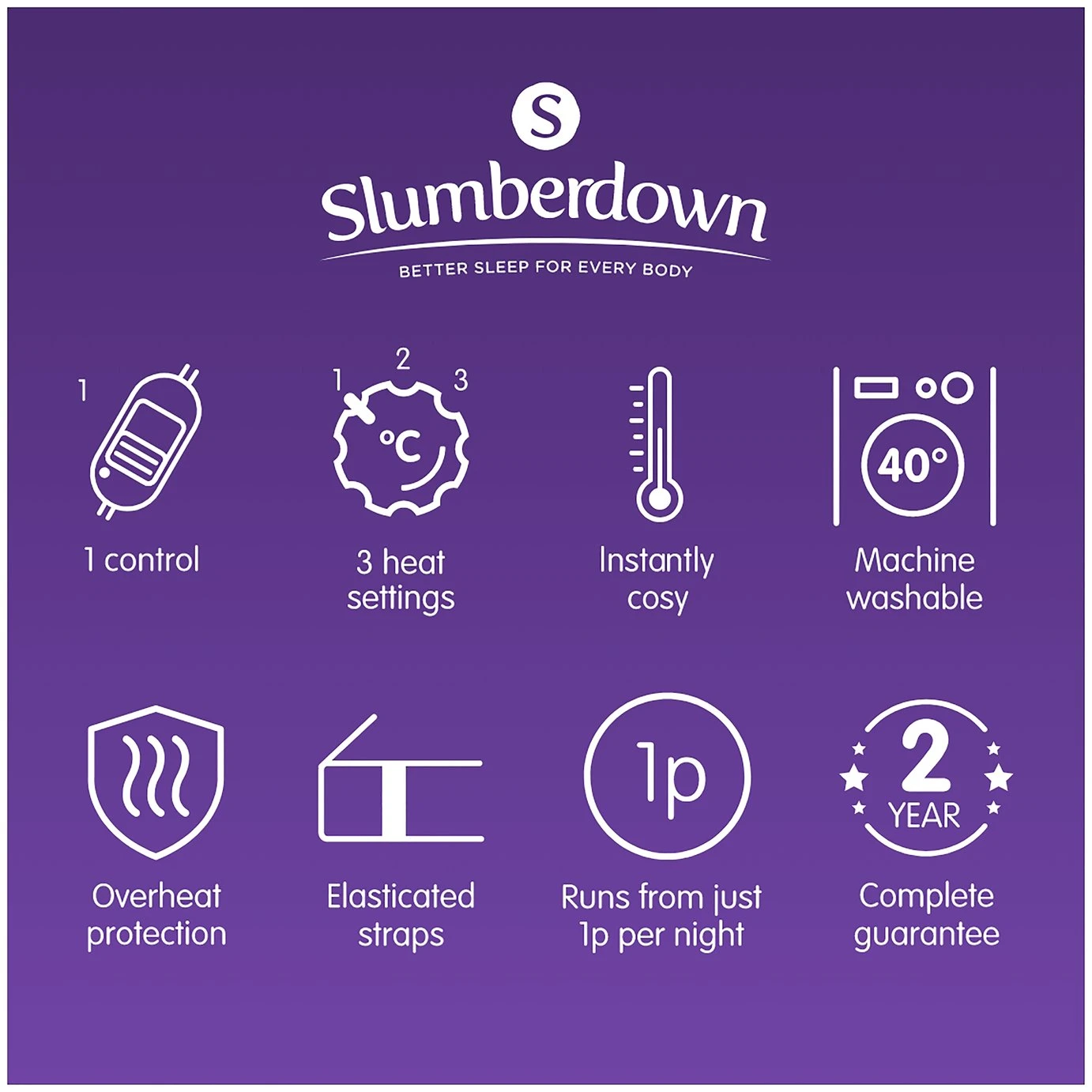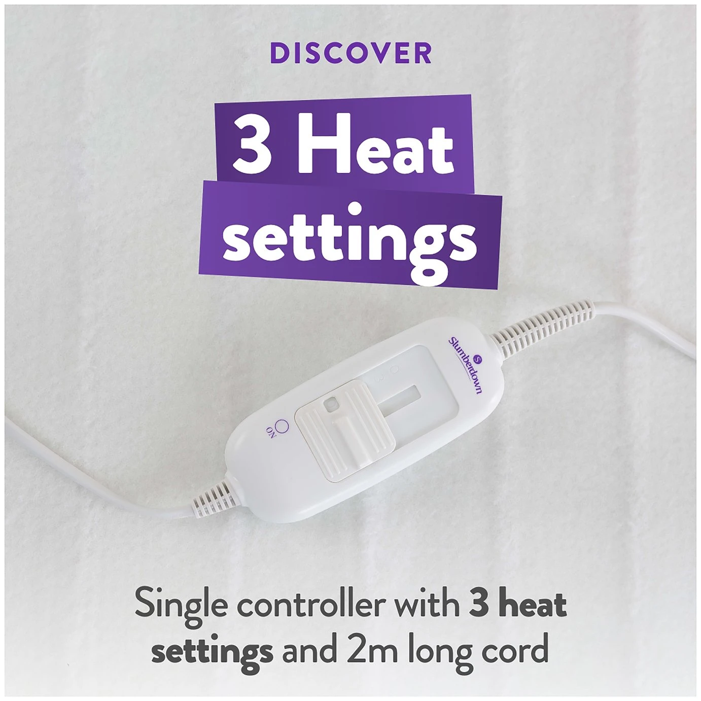 Keep your toes toasty with the Slumberdown Essentials electric blanket. It easily attaches with corner straps to a small double bed, and with 3 settings you can achieve the perfect temp for your cosy cocoon to curl up in. Conveniently, it's machine washable and has low energy consumption with auto shut off, giving you peace of mind.