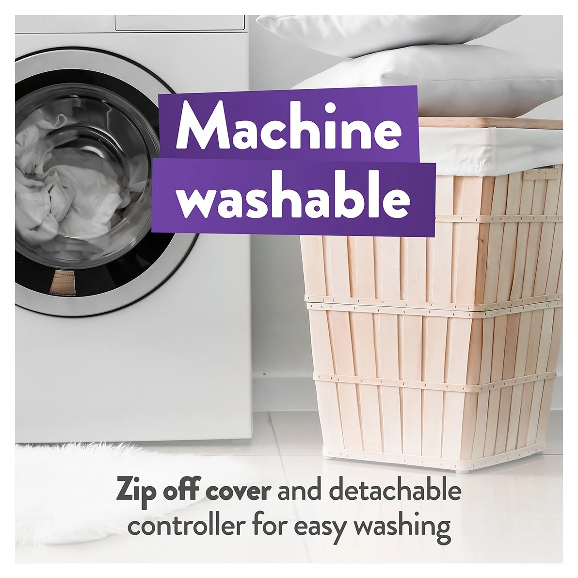 This blanket has a soft touch quilted cover which adds a layer of comfort to your bed. Whats more the comfort layer can be zipped off rather than taking off the full blanket, which means its easy care. The reinforced elasticated straps run the full width of your bed ensuring it stays in place night after night. Its easy to use with 3 x heat settings, that can be set for your ideal time period. It's machine washable, has a low energy consumption and automatic shut off to prevent overheating, giving you complete peace of mind.