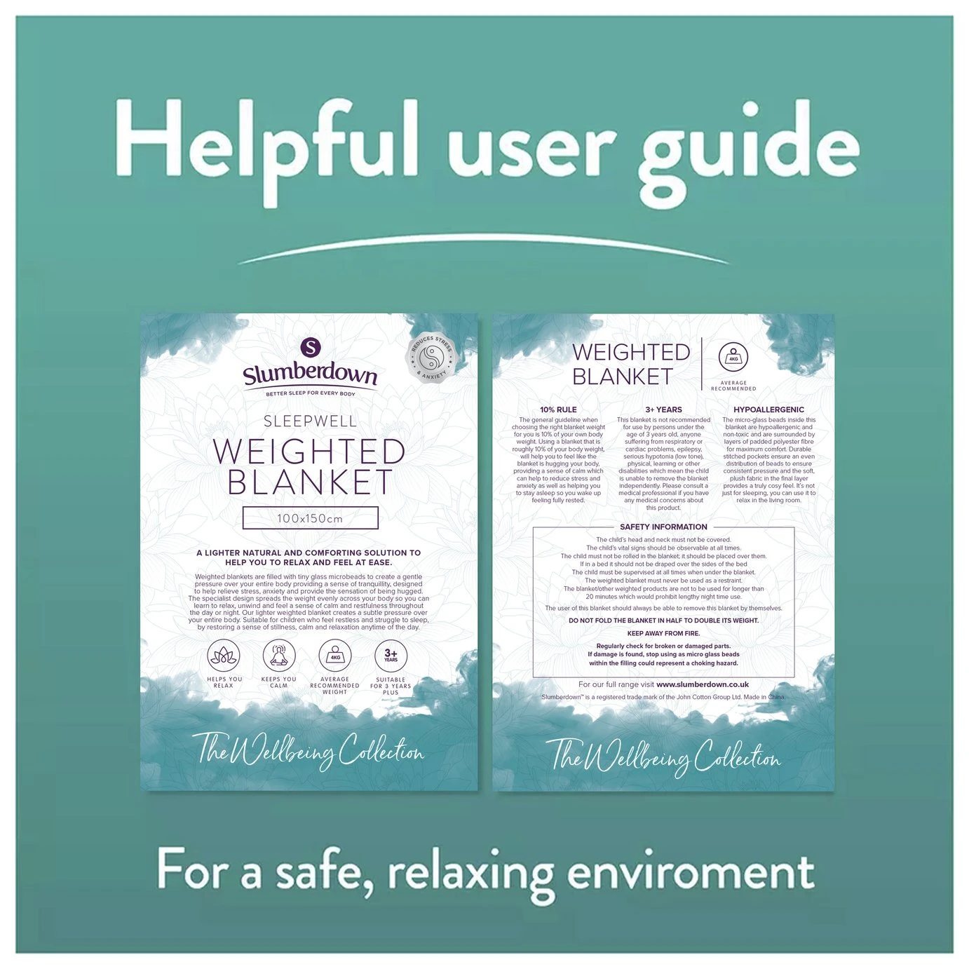 At Slumberdown, we believe everybody deserves a better night's sleep. The Slumberdown 4kg Weighted Blanket is part of our Wellbeing range and is ideal for anytime of the day or night. Weighted blankets are known to help improve sleep quality and can be used to relive stress and anxiety. The lovely soft grey blanket is filled with glass microbeads creating a gentle pressure over your entire body giving the sensation of being hugged, this allows you to relax, unwind and feel a sense of calm and restfulness.