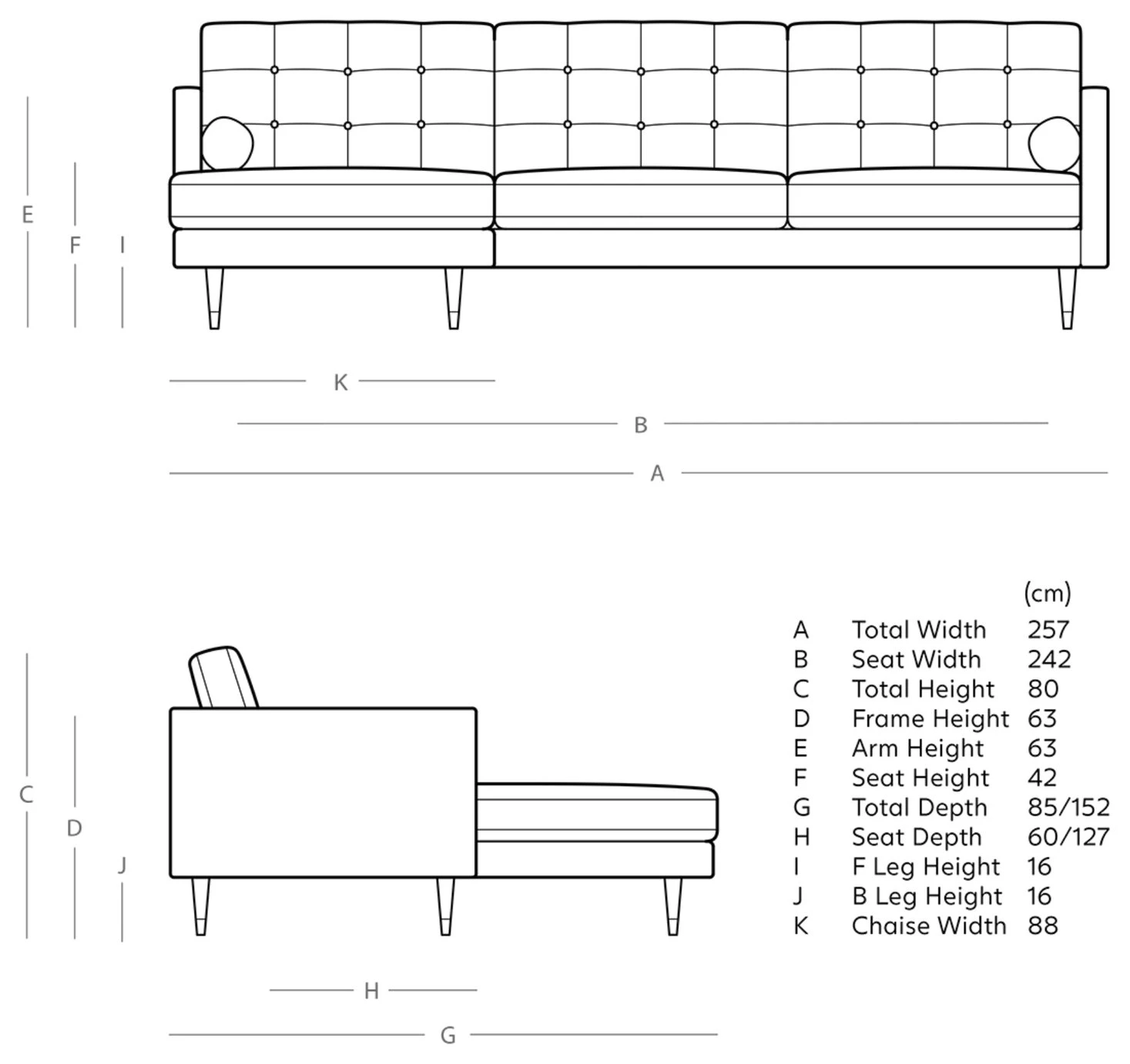 - Depth of seat: 124cm.