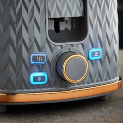 Collaborating midnight blue with rose gold tones, this Cavaletto 4 slice toaster injects a splash of colour into your breakfast routine. The defrost, reheat and cancel options put you in control of the toasting cycle, so you can warm up your snacks or toast straight from frozen. And with a variable browning control, you can select your preferring toasting texture to suit your taste.